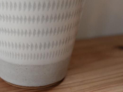 ・ろくろを回しながら、金具を表面に当てて、刻みを入れていきます。