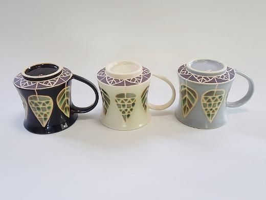 ・葉をモチーフにしました。持ち手が大きく指が3本入るので、飲み物をたっぷり入れても持ちやすいです。