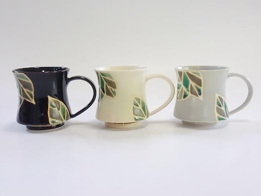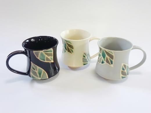 ・大きな葉をモチーフにしました。持ち手が大きく指が3本入るので、飲み物をたっぷり入れても持ちやすいです。