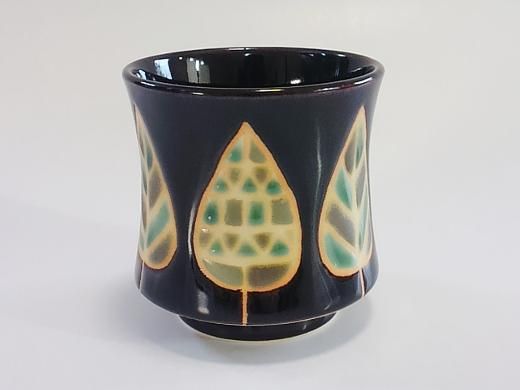 ・葉をモチーフにしました。湯呑本体がくびれているので、すべりにくく持ちやすいです。