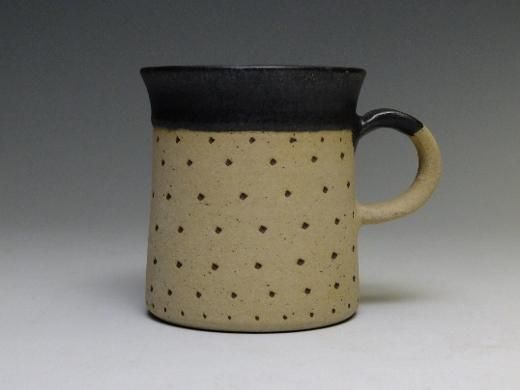 ・白い土に黒い釉薬のマグカップです。