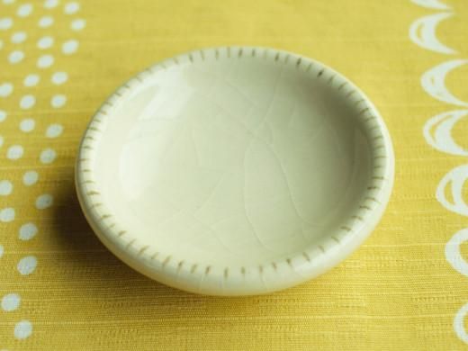・器の口がぽってり厚く白玉のような豆皿です。